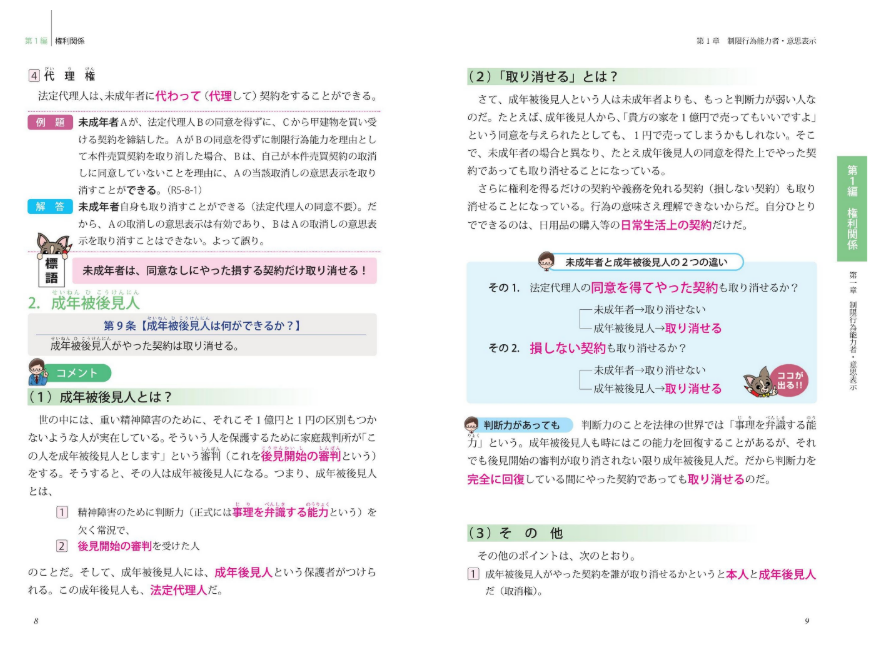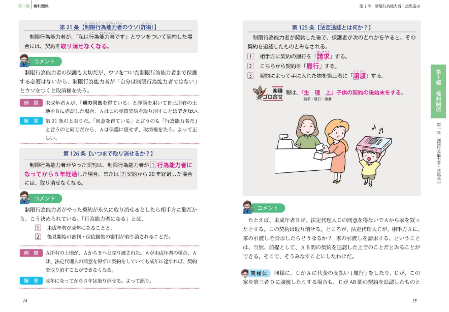 上記画像はAmazonのサンプルになりますが、「宅建業法」や「法令上の制限」などの暗記がものをいう分野をかなり分かりやすくまとめてくれてるんです。